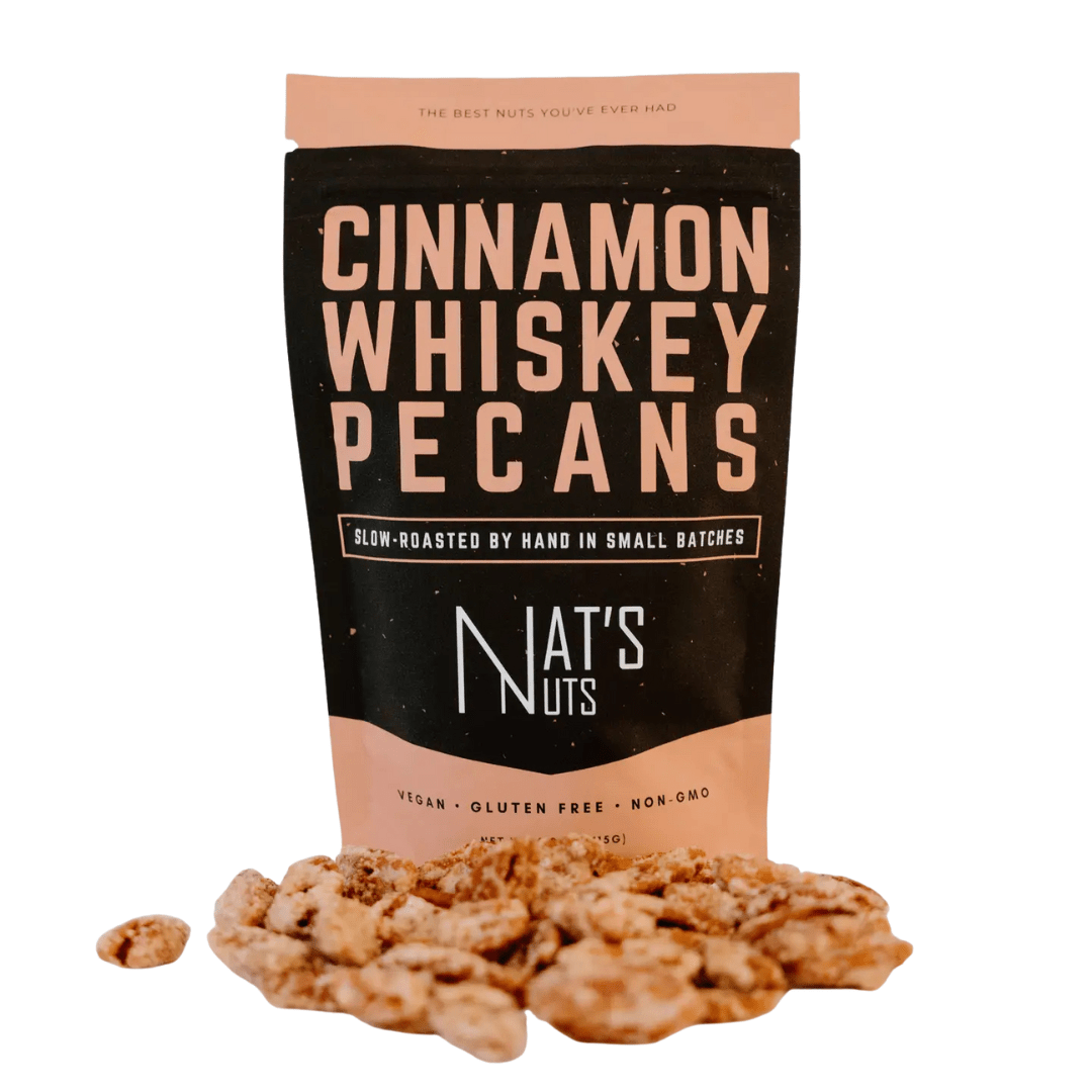 Our Cinnamon Whiskey Pecans are made with real whiskey and are roasted to perfection! They start with a soft crunch and finish with the perfect balance of Cinnamon and Whiskey. All of the alcohol is cooked out of this product, so it is safe for the whole family! Our Natural Ingredients: Pecans, Pure Cane Sugar, Whiskey, Cinnamon, Sea Salt