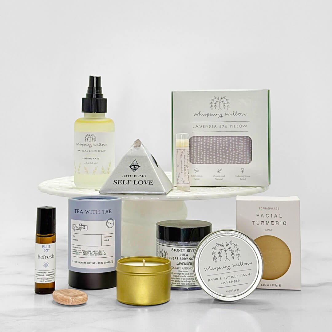 Take a moment for yourself with the Pause & Recenter Basket, a soothing collection of self-care essentials handcrafted by small American businesses to nurture the body, mind, and spirit.